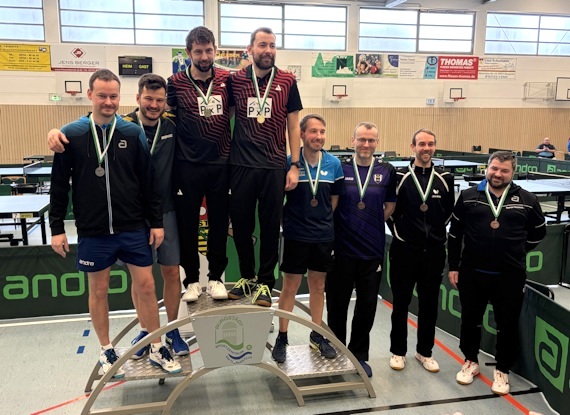 Doppel Senioren 40 - Patrick gewinnt mit Marcus Schneider (TTTC Lugau) Silber Im Doppelwettbewerb startete Patrick mit Marcus Schneider vom TTC Lugau, mit dem er im letzten Jahr mit dem Mitteldeutschen Meistertitel einen seiner größten Erfolge feierte. Sehr konzentriert und mit guter Leistung konnten die beiden ihr Viertelfinale und auch das Halbfinale siegreich beenden. Obwohl es im Endspiel gegen die Bautzener Paarung Engert/Gutsche nicht ganz reichte, kann man mit dem Vizetitel sehr zufrieden sein.