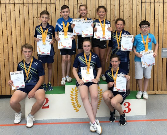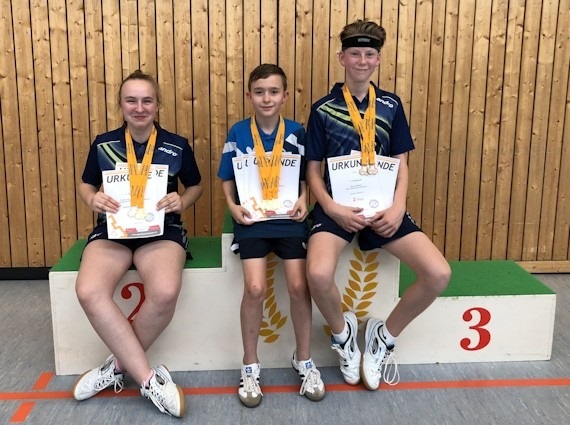 Alle 9 Jungen und Mädchen konnten sich am Ende über Edelmetall freuen, teilweise sogar doppelt Bei den Schülern U13 marschierte Rick unaufhaltsam Richtung Titel und blieb letztlich im gesamten Turnierverlauf ohne Satzverlust. Auch im gemeinsamen Doppel mit Leon war der Titelgewinn zu keinem Zeitpunkt in Gefahr. Stefan konnte sich hier mit seinem Bautzener Doppelpartner über die Bronzemedaille freuen. Bei Evelyn lief es ebenfalls gut. Sie musste sich nur der Favoritin, Lena Körner (TTC Neukirch), geschlagen geben und gewann Silber im Einzel. Den Doppelwettbewerb gewannen die beiden problemlos ohne Satzverlust.