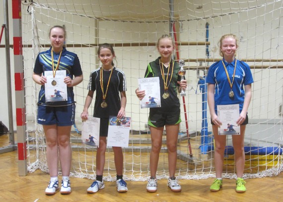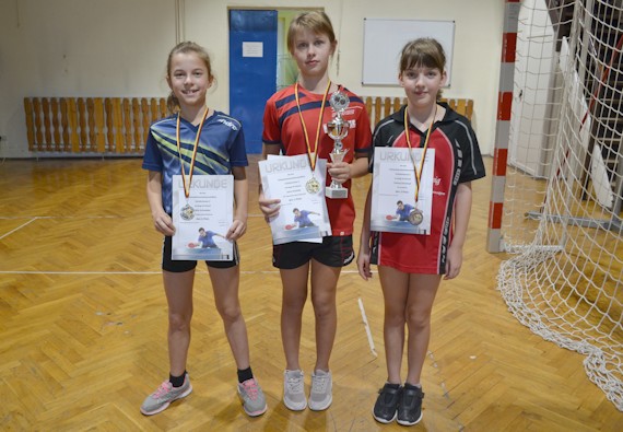 Evelyn erkämpft Bronze im Einzel und Silber im Doppel bei den Schülerinnen U15 Weiter ging es am Nachmittag mit der Altersklasse U15, wo wir gleich fünf Teilnehmer im Feld hatten. Evelyn Lorenz vertrat uns bei den Mädchen und erreichte mit 2 Einzelsiegen die Endrunde, wo sie im Halbfinale scheiterte und damit Bronze gewann. Im Doppelwettbewerb belegte Evleyn mit ihrer Partnerin Anna Thiele den 2. Platz.
