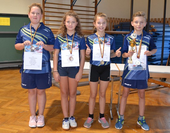 Mia gewinnt im Einzel der Schülerinnen U11 die Silbermedaille Im System "Jeder gegen Jeden" wurden mit Hin- und Rückspiel die Einzel ausgetragen. Gegen die große Favoritin vom Gastgeber schlug sich Mia sehr achtbar und unterlag im 2. Spiel nur hauchdünn mit 9:11 im Entscheidungssatz. Die weiteren Einzel gewann Mia ohne Mühe und konnte sich am Ende über Silber freuen.