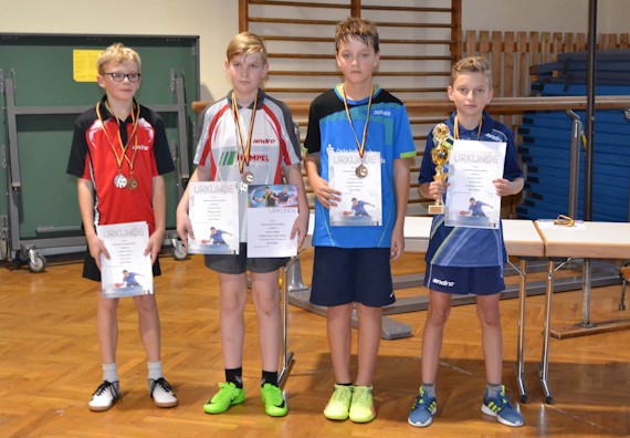 Enni, Jenny, Mia und Paul sorgten für super Erfolge in der Altersklasse U13 Zu guter Letzt durfte die Jugend U18 an die Tische. Hier spielten Rick Liebscher und Martin Bobach in einem sehr gut besetzten Starterfeld. Im Doppelwettbewerb erreichten die beiden das Halbfinale, ehe sie an den Favoriten und späteren Ostsachsenmeistern scheiterten. Die Gruppenphase im Einzel beendeten Rick und Martin ohne Niederlage und jeweils Platz 1. Damit sicherten sie sich ihren Setzplatz in der Endrunde, durch den sie anschließend auch profitierten. Die beiden Viertelfinals waren jedoch nichts für schwache Nerven. Martin setzte sich nach großem Kampf mit 15:13 im Entscheidungssatz durch. Ähnlich spannend machte es Rick, der mit 11:9 im 5. Durchgang erfolgreich war. Im anschließenden Halbfinale mussten sich unsere beiden Schützlinge aber den favorisierten Krauschwitzern deutlich beugen. Bronze im Einzel und im Doppel ist für beide ein gutes Ergebnis.