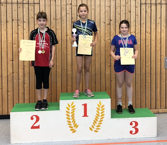 Mit 3x Gold & 1x Silber war Mia die erfolgreichste Spielerin der diesjährigen Kreismeisterschaft Mia zeigte auch eine Altersklasse höher was in ihr steckt. Sie gewann in ihrer Gruppe alle drei Spiele und wurde Erste. Nach dem Sieg im Halbfinale gegen Enni, musste sie sich nur im Endspiel der haushohen Favoritin, Maria Becker (SG Wiednitz/Heide), beugen. Eben mit dieser marschierte Mia ungeschlagen durch die Doppelkonkurrenz und gewann dort bereits ihre dritte Goldmedaille.