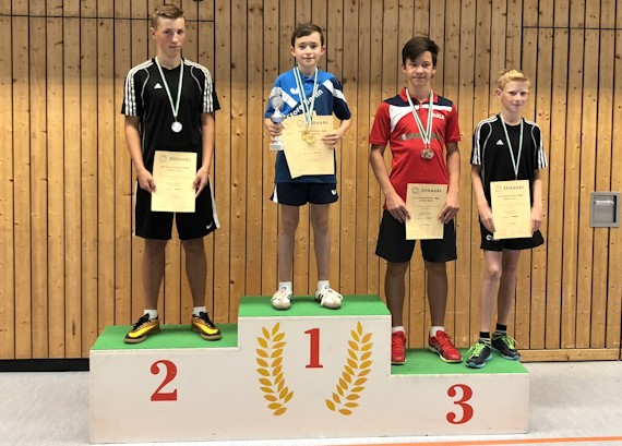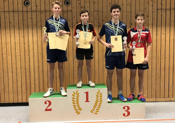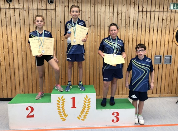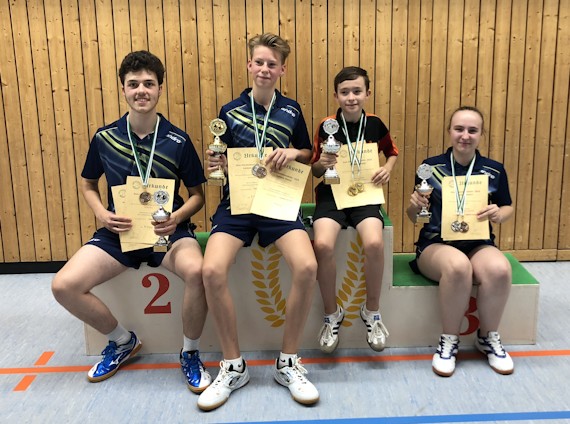 Unsere Jugend mit Rick, Martin & Max blieb gegen vereinsfremde Spieler ungeschlagen In den vier Altersklassen holten unsere Schützlinge 19 Medaillen. Davon gleich 9 in glänzendem Gold, 6 Silberne und 4 Bronzene. Erfolgreichster Starter war einmal mehr Rick mit vier Kreismeistertiteln. Hervorragend verlief auch die erste Kreismeisterschaft für Mia, die in zwei Altersklassen drei Titel gewann und dazu einen Vizetitel. Den kompletten Medaillensatz mit Gold, Silber und Bronze gewann einzig Evelyn. Paul sollte mit seinen beiden Goldmedaillen und einem 2. Platz aber auch sehr zufrieden sein.