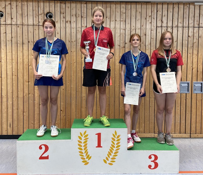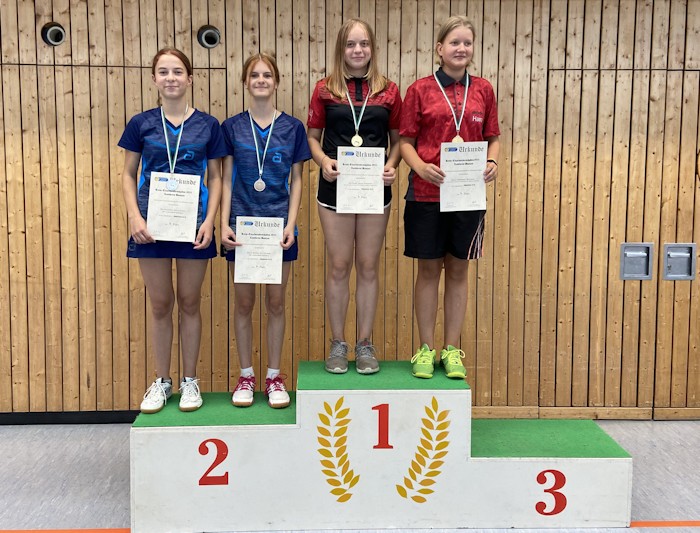 Silber für Mia und Selina im gemeinsamen Doppel Das Feld der Mädchen war wie gewohnt überschaubar, aber immerhin war es das Größte der vier Altersklassen. Nach drei gespielten Doppeln verpassten Mia und Selina gegen die Turnierfavoritin aus Kirschau/Sohland nur knapp den Kreismeistertitel und gewannen am Ende die Silbermedaille.