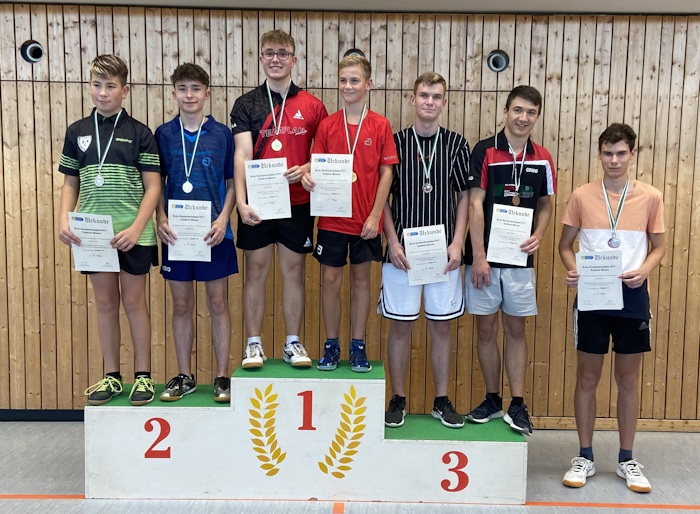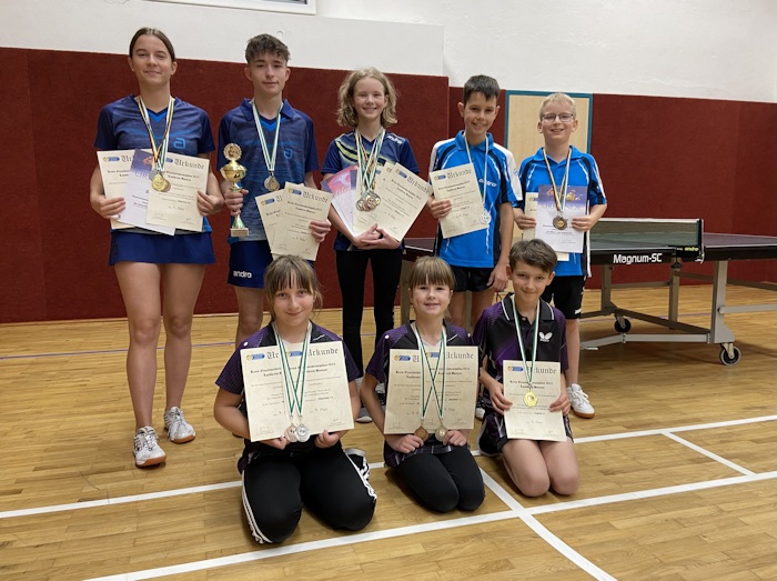 Unsere erfolgreichen Teilnehmer der Altersklassen U13 und U19 nach dem 2. Turniertag Mit insgesamt 13 Medaillen übertrafen unsere Nachwuchsspieler das Ergebnis vom letzten Jahr deutlich. Erfreulich ist vor allem, dass sich diesmal alle eigenen Teilnehmer über mindestens eine Medaille freuen können und es so ausschließlich zufriedene Gesichter gab.