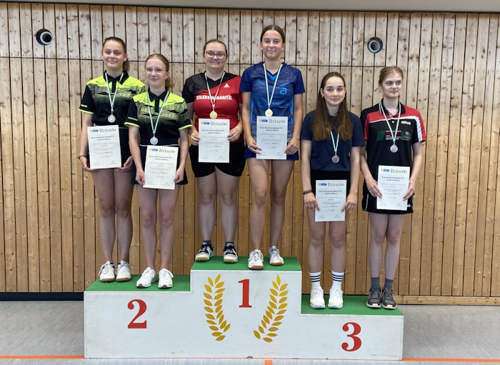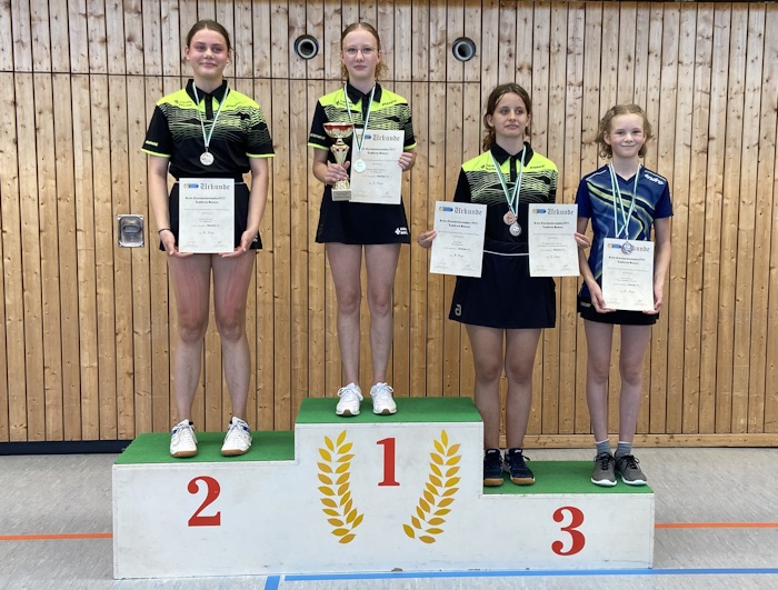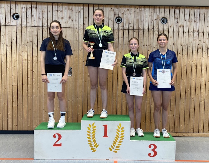 Einzel Mädchen 19 - Mia kommt in einem guten Teilnehmerfeld auf den Bronzerang Im Einzel holte Mia auch das Maximale heraus. Gegen die beiden Kubschützer Mädchen war erwartungsgemäß wenig zu holen, aber die anderen Einzel waren sehr ordentlich und durch zwei Siege gewann Mia auch hier die Bronzemedaille.