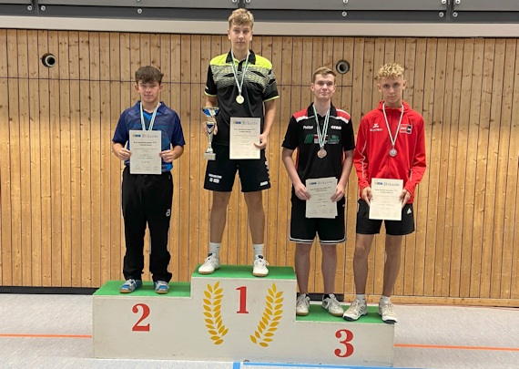 Doppel Jungen 19 - Lenny holt zusammen mit Philipp Kempe Bronze Lenny bekam es bei den Jungen 19 mit einer ganzen Reihe sehr guter Spieler zu tun. Im Doppel spielte er mit Kempe (SV "Grün-Weiß" Elstra). Die beiden gingen von Setzplatz 2 aus ins Turnier, aber konnten diesen nicht ganz bestätigen und holten Bronze. Im Halbfinale unterlagen sie nach einem spannenden Spielverlauf mit 2:3 gegen eine eingespielte Paarung aus Cunewalde.