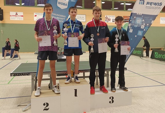 Im Doppel erkämpfte Rick zusammen mit Moritz Drube die Bronzemedaille Im Doppel spielte Rick zusammen mit Moritz Drube vom TTV Neugersdorf gegen den er das Einzelendspiel bei der Ostsachsenmeisterschaft bestritt und knapp mit 3:2 siegte. Letztlich lief alles nach Plan und mit dem gewonnenen Viertelfinale war das Maximalziel erreicht. Gegen die topgesetzte Paarung reichte es im Halbfinale erwartungsgemäß nicht für eine Überraschung. I Nach spannendem Turnierverlauf darf Rick sich auch im Einzel über einen Pokal freuen Im Einzel startete Rick etwas durchwachsen in die Gruppenspiele. Mit 2:1 Spielen reichte es dennoch knapp für das Erreichen der Endrunde. Hier gewann Rick sein Achtelfinale relativ souverän mit 3:1 Sätzen. Eine wahren Krimi gab es anschließend im Viertelfinale gegen Schubert vom TTV Schwarzenberg. Mit viel Nervenstärke behielt Rick im Entscheidungssatz mit 13:11 die Oberhand und konnte sich auch im Einzel über Platz 3 freuen. |