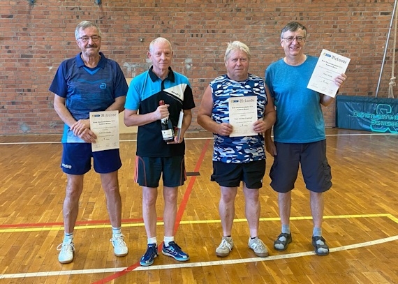 Bei schweißtreibenden Temperaturen fanden am 07. September beim SV Burkau die diesjährigen Kreiseinzelmeisterschaften aller Senioren-Altersklassen statt. In knapp 6 Stunden Spielzeit wurden aus den insgesamt 43 Teilnehmern die Sieger im Einzel und im Doppel ermittelt. Erstmals waren wir mit gleich fünf eigenen Startern vertreten. Rolf Schäfer AK85, Siegmar Jannasch AK75, Andreas Scheibe & Hans-Joachim Friedland AK65 sowie Patrick Wendt AK40.