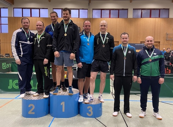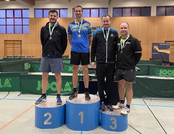 Einzel Senioren 40 - 3. Platz für Patrick in einem sehr starken Teilnehmerfeld Im Einzel erwischte Patrick die einzige 5er-Gruppe, von denen nur die ersten beiden in die Endrunde kamen. Doch nach sehr guten Leistungen und 3:1 Spielen reichte es für den Einzug ins Viertelfinale. Hier ging es dann am Sonntag nach dem Mittag weiter und Gegner war mit Landesligaspieler Steffen Schreiter vom TSV Elektronik Gornsdorf ein alter Bekannter. Patrick fand besser ins Spiel und konnte die ersten beiden Durchgänge für sich entscheiden. In Satz 3 reichte eine 7:3 Führung nicht, aber mit 11:9 ging der Vierte umkämpft an Patrick, der damit auch im Einzel Platz 3 erkämpfte. Dank dieser guten Ergebnisse qualifizierte sich Patrick für die Mitteldeutsche Einzelmeisterschaft, die am 11./12.03.2023 in Osterburg (Sachsen-Anhalt) stattfindet.