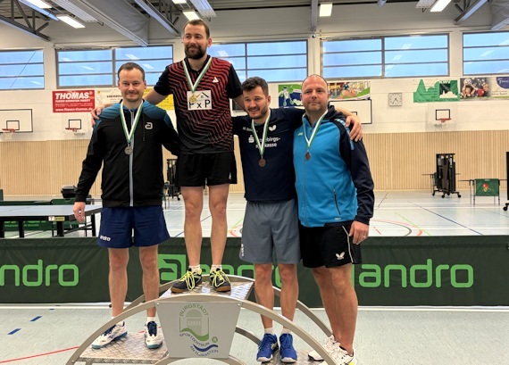 Doppel Senioren 40 - Patrick gewinnt mit Marcus Schneider (TTTC Lugau) Silber Im Doppelwettbewerb startete Patrick mit Marcus Schneider vom TTC Lugau, mit dem er im letzten Jahr mit dem Mitteldeutschen Meistertitel einen seiner größten Erfolge feierte. Sehr konzentriert und mit guter Leistung konnten die beiden ihr Viertelfinale und auch das Halbfinale siegreich beenden. Obwohl es im Endspiel gegen die Bautzener Paarung Engert/Gutsche nicht ganz reichte, kann man mit dem Vizetitel sehr zufrieden sein.
