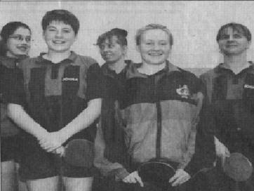 Susann Mocker, Dana Beier, Anett Schäfer, Diana Manja, Gabi Barth (v.l.n.r.) - 1997 Die Erfolge auf Bezirks- und Landesebene von unseren damaligen Nachwuchsspieler Hendrik Köhler sowie die Teilnahme am Süddeutschen Sichtungsturnier in Baden-Baden im Jahre 1994 sind hier ebenfalls hervorzuheben. Ende der 90er Jahre bis ca. 2002 setzten Silvio und Maik Minkwitz mit guten Ergebnissen bei Süddeutschen- und allgemeinen Landesmeisterschaften die Erfolge im Nachwuchsbereich fort. So nahm z.B. Silvio Minkwitz 1998 an den Süddeutschen Meisterschaften in Nürnberg teil. Maik Minkwitz startete im gleichen Jahr in Karlsruhe bei der Sichtung für das Bundesleistungszentrum. Ein Jahr später, also 1999, wurde Maik im Doppel bei den Schülern U13 sogar Sachsenmeister.